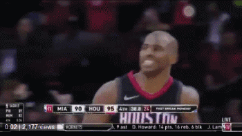 最后关键时刻,哈登跟保罗站出来接管了比赛,比赛最后的39.7秒,当时保罗右侧45度角持球时,CP3阅读了防守,热火的理查德森不敢向前防守!好你一个保罗,迎着防守直接干拔,球在天空划出一道美丽的弧线后空心入筐。这一球,确保此前领先3分的火箭,将比分变成95-90,基本上杀死了比赛。