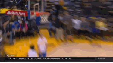 杜兰特马上走到了该球迷的身边查看情况并表示歉意,随后勇士主场的保安邀请该球迷进入勇士更衣室进行检查。