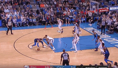 果然,今天他们没有让我们失望。开场不久,恩比德就对着威少上演了一记残暴的隔扣,本想造进攻犯规的威少无奈成了背景。