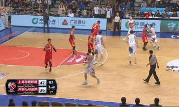 到了第二节末段,还是明纳拉斯笑到了最后。在离三分线两步的地方,明纳拉斯左顾右盼,突然拔起干拔三分命中!这个进球让上海队的领先优势扩大到了14分!
