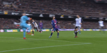 本场比赛梅西进入状态很快,刚刚开场他就有一次连续突破,从后场边路开始过掉了瓦伦西亚3名防守球员。