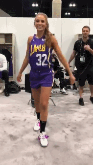 2018年洛杉矶全明星今天正式开始,今年的全明星名人赛分为快船队和湖人队,著名2K美女主播瑞秋今天在社交媒体上发布了一段自己穿着名人赛湖人球衣的视频。
