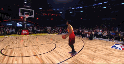 米切尔率先登场。他第一球极具创意,使用了两个篮筐。只见他用篮球抛远端的第二个篮筐后自抛自扣,腾空接球后一记大回环暴扣。这记扣篮一气呵成,博得了满堂喝彩。当然,这个球难度稍显欠缺,不过创意十足,而且是一次完成,最终拿到了3个10分,2个9分,合计是48分,得分相当不错。