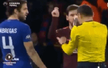 在一次切尔西的任意球机会中,小法快发将球开出,梅西则抗议其违规,随后裁判招手示意重发。