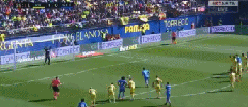 第35分钟,比利亚雷亚尔球员禁区内犯规,裁判判罚点球,安赫尔主罚的点球被阿森霍神勇扑出。