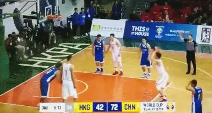 第三节刚开始,中国队打出一波12-2的小高潮,把分差扩大到了30分。或许是巨大的分差让球员的心理出现了松懈的情绪,在第三节还剩下5分13秒时,周鹏造成对手犯规,在第一罚稳稳命中,正当人们以为第二罚也会照样命中时,周鹏出手,皮球划出一道抛物线,但是却三不沾。