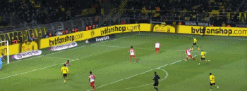 第16分钟,罗伊斯后场断球直塞,格策带球快速推进前场球分右侧,许尔勒跟进横敲门前,球被欣特雷格尔拦截一下,罗伊斯包抄到位推射破门,1-0!