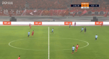 第19分钟,奥斯卡中场送出过顶,武磊突然启动高速前插,甩开防守杀入禁区,单刀趟过张翀一脚推射,张翀迅速回身,鱼跃将球按在身下!