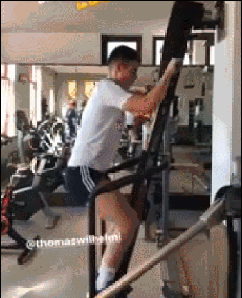 拜仁健身房是德甲一大乐土。J罗在练力量时却‘遭’到了里贝里的调戏,J罗表情亮了。