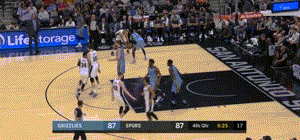 当马刺以89-87领衔灰熊时,帕克再次接到加索尔的传球,他绕道罚篮线周围,又是稳稳命中靶心。