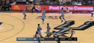 随后,帕克与加索尔打出配合,加索尔用自己的身体硬抗灰熊两名防守球员,这其中包括自己的弟弟马克-加索尔,他为帕克拉出空间,帕克中投稳稳命中。