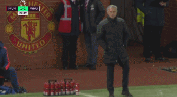 曼联对阵水晶宫的英超比赛,摄像镜头中记录了一幕小花絮。在比赛中,也许是过于专注比赛,穆帅踢倒了场边的水瓶,随后他立马回过神来,意识到自己的行为,并面带微笑向场边工作人员示意自己并非故意。