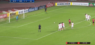 高拉特主罚点球,皮球直取右路,门将判断错了方向,皮球应声入网。恒大5分钟连进2球,恒大3-2反超济州联!