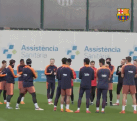 在今天的球队训练课开始之前,巴萨全队也是为梅西送上了祝福的掌声。