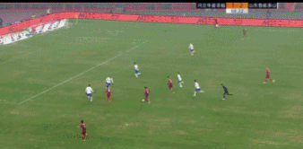 第一个关键扑救出现在第45分钟,华夏幸福边路传中过来之后,鲁能后卫郑铮没有踢到皮球,而后点的张呈栋已经拍马杀到,就当张呈栋以为可以轻松抢点时,王大雷把身体横着飞出,长臂一览,将球抱如怀中。这球王大雷只要稍微慢一点,那么华夏幸福上半场可能就反超比分了。
