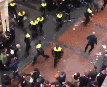防暴警察被派到事发地点进行支援,当时更有一些球迷向河里的游船扔酒瓶并且跳到运河里。