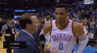 雷霆今天在主场以105-99战胜热火,赛后威少接受了场边采访。