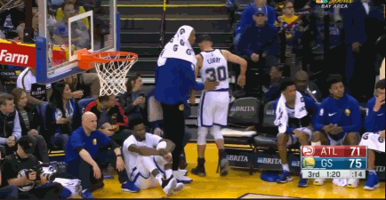 3分10秒,库里在防守端被麦基倒地时误伤(身体碰到库里的左腿、左脚),看起来左腿或是左脚很不舒服,表情有些痛苦,最后还是不情愿地下场。