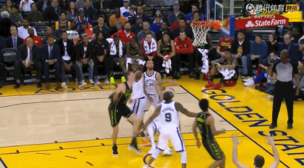 在自己连续得分后,库里这回把球带到了老鹰的多人包围圈中,好在他还是在倒地之前把球传出,队友又分球出去,杨完成3分,库里自己也笑了。