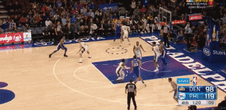 然而,久疏战阵的状元秀显然没有找到比赛的节奏,在自己持球进攻的第一回合,他就在突破时因力量不足出现失误,在身体对抗中被掘金后卫穆雷断球,之后又迅速领到个人的第一次犯规。不过下一个回合中,富尔茨与恩比德进行了一次手递手传球配合,前者抓住机会,完成一记跨步滑翔式挑篮。