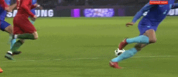 而上一场表现出色,在补时阶段梅开二度的C罗在本场比赛却无法保持良好的竞技状态。不仅无进球入账+首次单场比赛中0射门,而且还在一次进攻中不慎被草皮绊倒。
