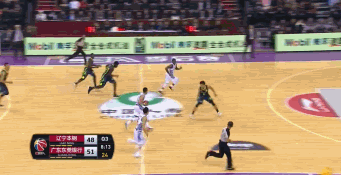 比赛还剩下4分钟时,郭艾伦借掩护轻松甩开胡明轩,从任骏飞身前突破过去,尼克尔森防不急,郭艾伦直接加速上篮得手。郭艾伦这球好似踩着风火轮一样,广东三名球员也只能目送郭艾伦上篮得分。
