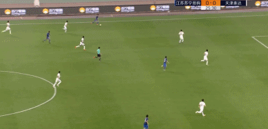 2分钟后,刚刚连续丢球的泰达后防线再次出现失误,曹阳回传门将杜佳,导致后者不慎滑倒,幸亏杜佳及时起身在门前将球解围。