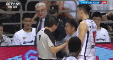 昨天晚上,在辽粤第三场比赛的第四节还有10分钟的时候,裁判吹罚了李晓旭对阿联犯规。主帅尤纳斯对裁判表示不满,一直在和裁判申诉。但突然从侧边杀出了广东队的董事长陈海涛,他和裁判激烈地讨论,最后还推搡了裁判。裁判马上给了他一个技术犯规。