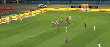 第9分钟,上港获得前场定位球机会,胡尔克任意球开出,皮球解围在了奥斯卡脚下,奥斯卡起脚射门打在武磊身上偏出底线。