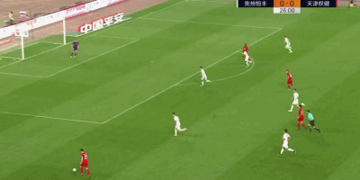 上半场比赛结束,天津权健客场暂时1-0领先贵州恒丰。