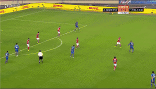 通过上图可以看到,在进攻提速时,恒大就能最大限度地发挥前场球员之间的灵动传跑,最终制造了绝佳的射门机会。