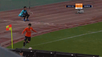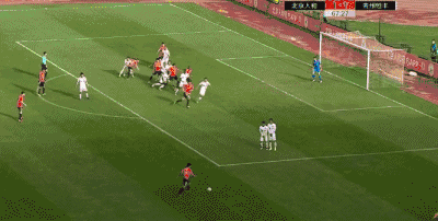 比赛第68分钟,人和右路传中制造威胁,刘健门前垫射,贵州恒丰门将张思鹏反应神速做出扑救,把球压在球门线上。