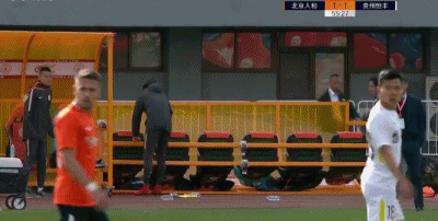 比赛第56分钟,现场发生小插曲。由于现场风力较大,一组无人在座的替补席座椅被大风掀倒。