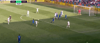 本场比赛在自由球场打响。第43分钟,埃弗顿连续在天鹅城禁区内发起连续进攻,法比安斯基连续2次扑救力保城门不失,但最后一次扑球打在诺顿头上,后者不慎自摆乌龙,0-1!