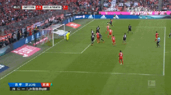 比赛进行到第9分钟,门兴反客为主取得领先!霍夫曼右路送出直塞,德尔米奇插上得球禁区右侧扣过聚勒后左脚兜射远角得手!拜仁0-1门兴!