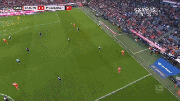 第41分钟,拜仁将比分反超!穆勒右路传中被对方挡回,穆勒顺势凌空将球端到禁区中央,瓦格纳高高跃起头球攻门,索默虽然扑到但仍无法阻止皮球越过门线!拜仁2-1门兴!