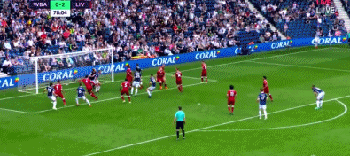 第87分钟,布伦特主罚边路任意球传中,隆东前点头槌破门,西布朗2-2利物浦!
