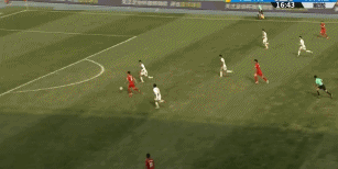 第35分钟,刘奕鸣中场送出长传,禁区内吴涛出击,苏缘杰高速前插抢在飞身扑救的吴涛前,先出一脚凌空打门,皮球高出横梁。
