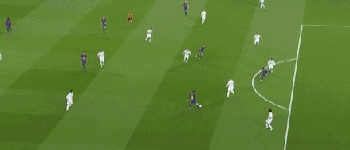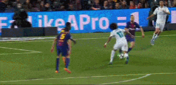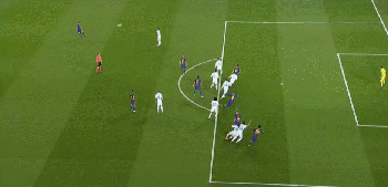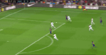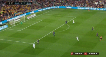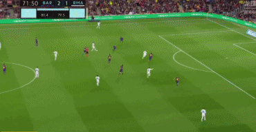 比赛第73分钟,阿森西奥把球传到禁区弧顶处的空当,贝尔插上不做调整,左脚射门,球划过一道弧线擦着门柱飞进球门,巴萨2-2皇马!