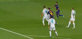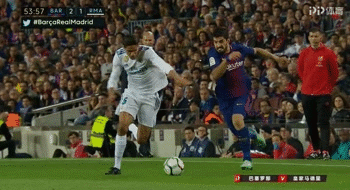 而拉莫斯也与苏亚雷斯产生碰撞从而发展为口角+推搡,两人均吃到黄牌。