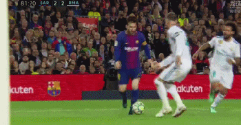 第44分钟,梅西前场逼抢拉莫斯犯规同样吃到黄牌。