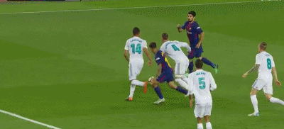 少一人应战的巴萨在下半场伊始便由梅西将比分反超,但回放显示,苏亚雷斯在夺得球权前从身后勾倒了瓦拉内,特别是这样的行为直接为巴萨带来了一粒进球,这也招致了场上皇马球员的不满。