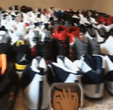 虽然镜头在不断晃动,但我们也能清楚地看到,地上密密麻麻摆放了数十双各色球鞋,这对于普通球迷来说简直是不敢想象的收藏量。