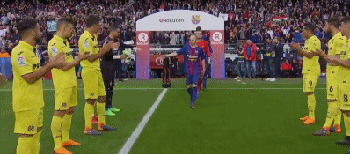 唯彩看球5月10日讯 北京时间5月10日凌晨,西甲第34轮补赛巴萨在主场对阵比利亚雷亚尔。赛前比利亚雷亚尔全队为巴萨列队致敬,欢迎巴萨本赛季夺得西甲冠军。