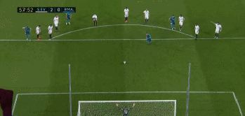 83分钟,梅尔卡多禁区内右路传球,拉莫斯一挡,皮球直接飞入球网,塞维利亚3-0皇家马德里。