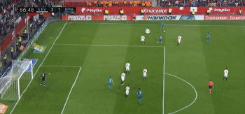 87分钟,阿森西奥右路传中,马约拉尔头球破门扳回一球,塞维利亚3-1皇家马德里。