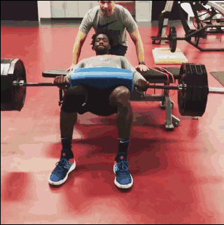 配文写道:我将要回归了~!现在已经是可以挺起405磅了#快船#