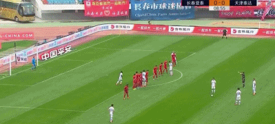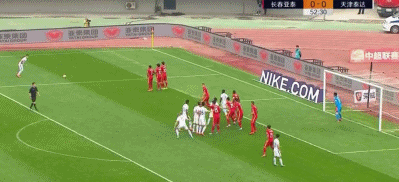 第9分钟,天津泰达获得前场定位球机会,惠家康主罚直接打门,一记低射稍稍偏出。