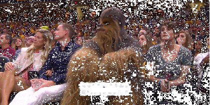 詹姆斯今天的表现堪称灭霸詹皇,只是骑士这主场居然还出现了星球大战里的楚巴卡!所以,一场猩球大战灭霸狂虐楚巴卡如期上映!