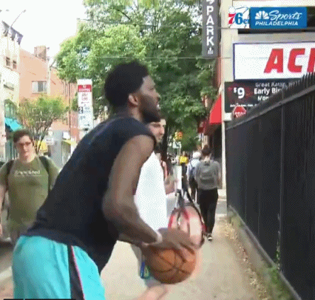 NBC体育近日在社交媒体上发布了一段恩比德在街头打球的视频,大帝站在马路边秀了一波操作。